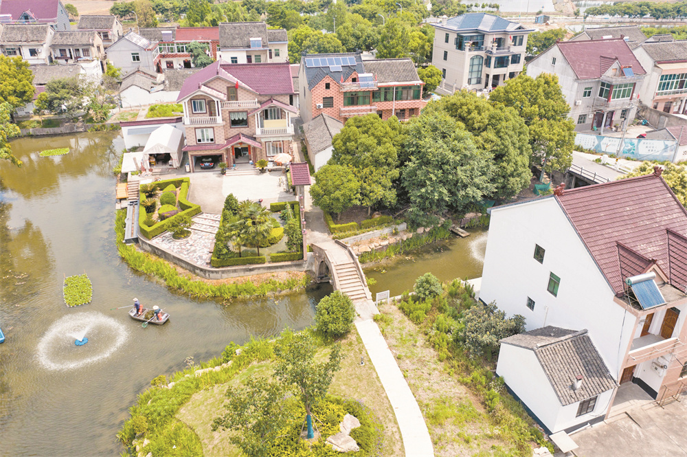 6月15日,空中俯瞰浙江省嘉兴市秀洲区新塍镇康和桥村(无人机照片)。