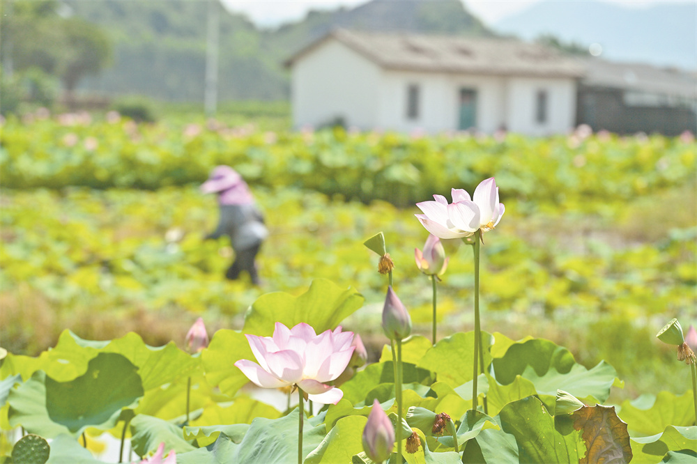 截至目前,鹿寨县共完成新建高标准农田3.738万亩,建成稻花香里水稻试验示范区、祥荷乡韵农业观光休闲区、“十里休闲长廊”等一批田园综合体项目,为农民提供各类就业岗位1万多个。 新华社记者 黄孝邦 摄