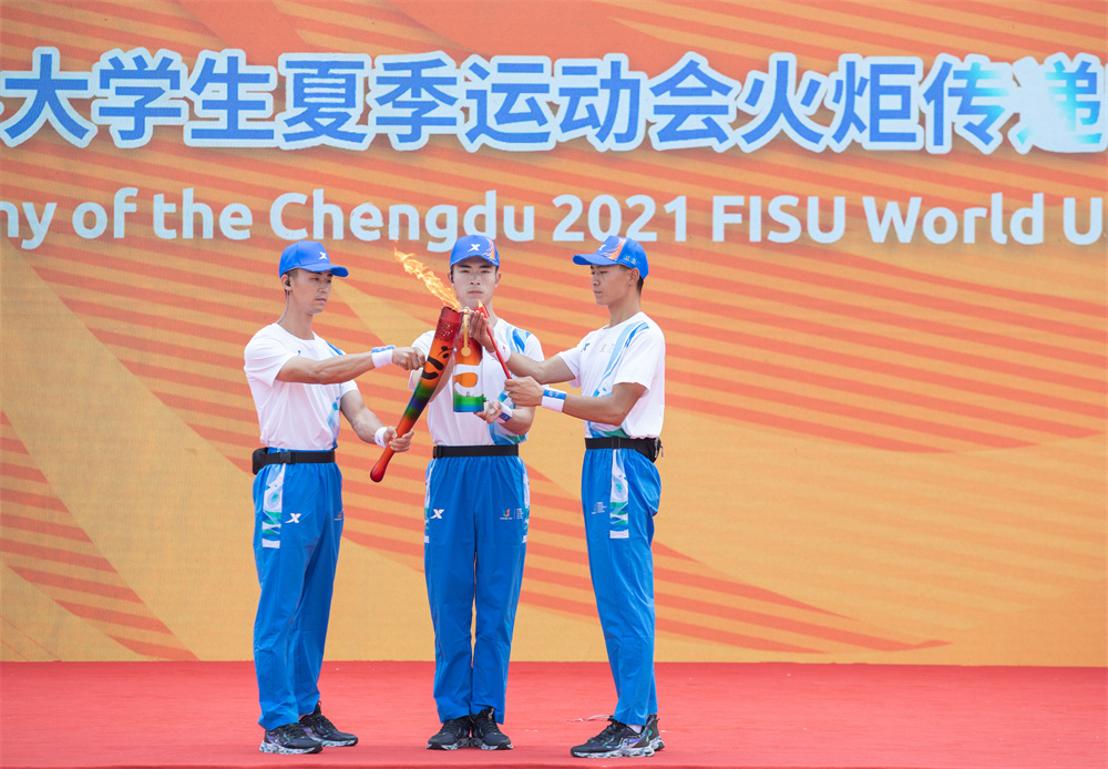 当日,成都第31届世界大学生夏季运动会火炬传递哈尔滨站在哈尔滨工业大学校园内举行。