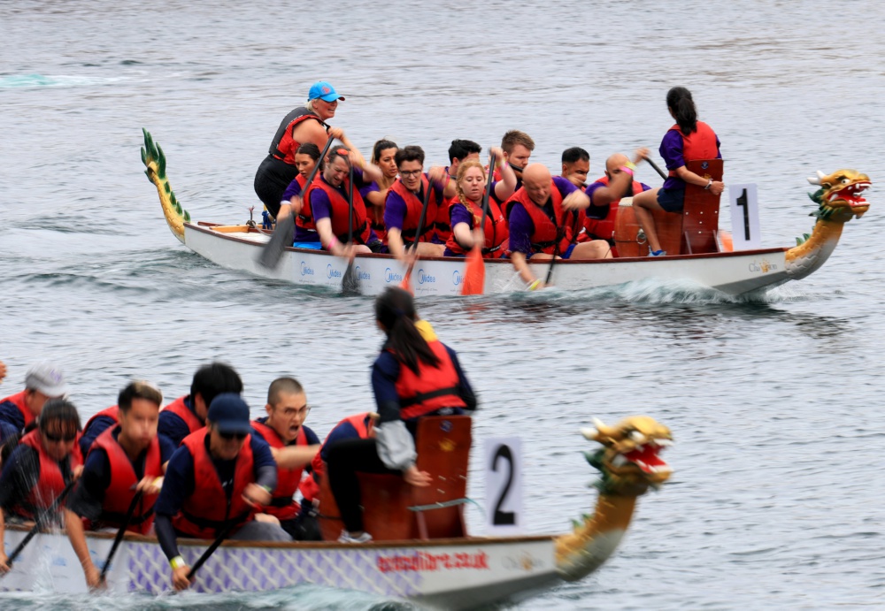 当日,2023年全英中华端午龙舟会在英国索尔福德市的古运河上开幕。在今年的龙舟会上,共有50多支队伍参加比赛,选手们用这种方式共同迎接端午节。除了龙舟比赛,主办方还在比赛场地组织了中国特色的表演节目,包括武术、舞龙舞狮、传统舞蹈、书法展示等,多方位展示中华传统文化。