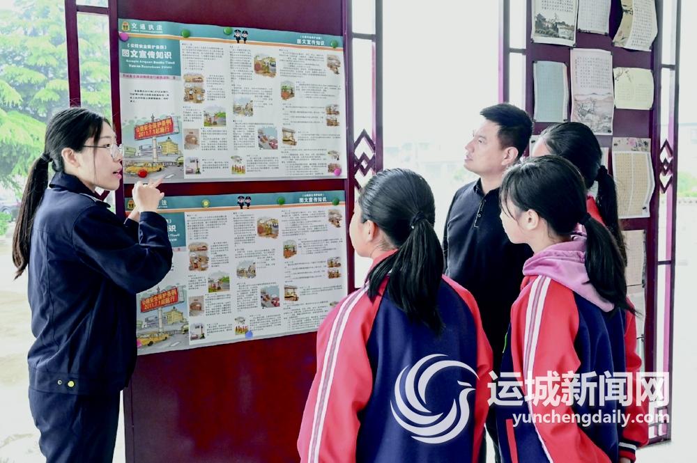 绛县出动执法人员140余人次,先后深入南樊镇史村樱桃市场、大交镇等地,发放宣传资料,向村民讲述有关公路法律法规知识,听取村民对交通执法工作的意见和建议。闻喜县出动执法人员95余人次,在县城及各乡镇人员密集区域发放路政宣传资料,在县乡公路沿线主要路段、乡村公示栏张贴通告。临猗县利用出租车顶灯、企业电子显示屏等不间断进行路政宣传。万荣县执法人员还走进中小学,为孩子们讲解公路安全知识,引导他们遵守道路安全有关规定,争做爱路护路使者。