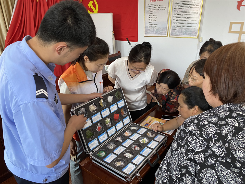 活动中,禁毒民警和禁毒社工通过悬挂横幅、展示毒品仿真模型等方式,向社区居民以及社区网格员讲解了毒品的危害、种类和毒瘾难戒的原因,提醒居民认清新型毒品的危害,自觉抵制毒品。