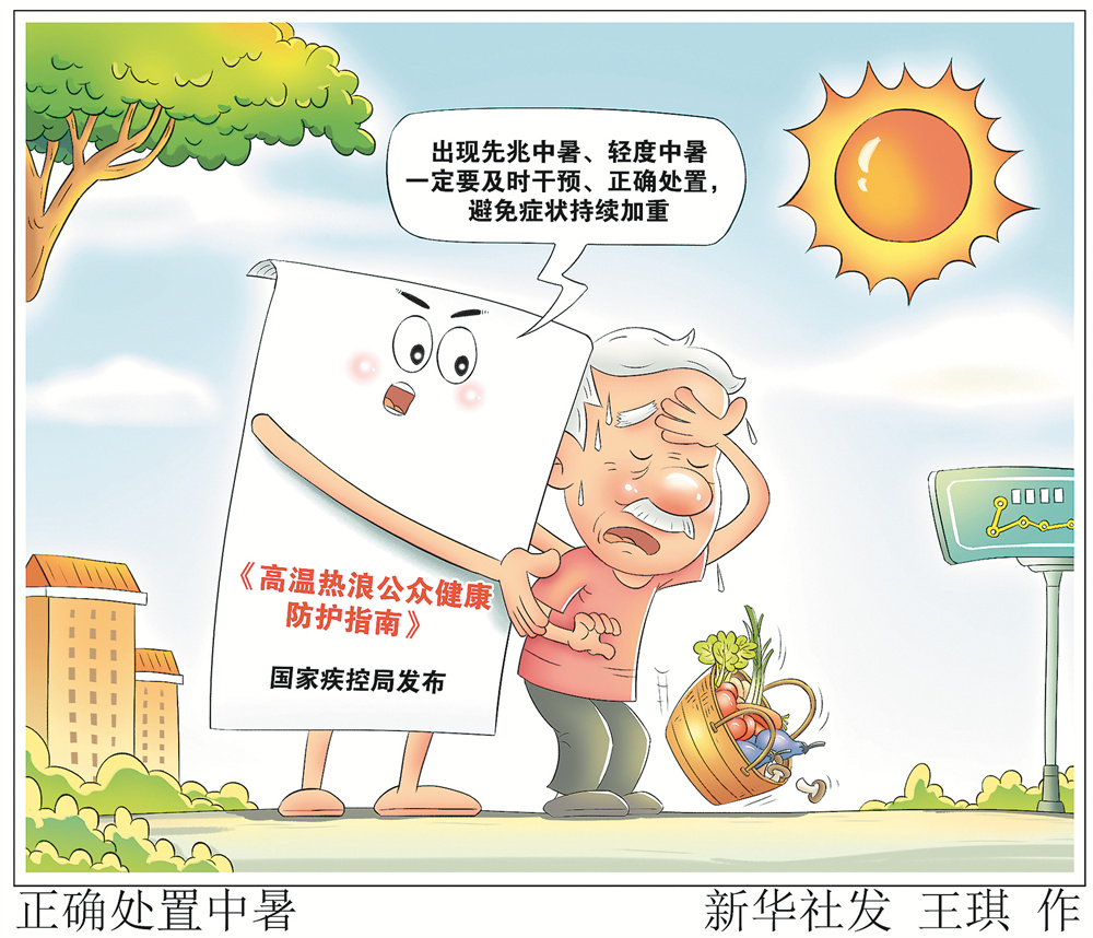 重点人群中暑了怎么办?专家建议,出现中暑症状时,要将患者转移到阴凉通风处,解开患者衣袖、领口,用凉毛巾擦拭患者四肢皮肤,或者用冰袋冰敷于患者的额头、腋窝、大腿根等部位,加速降温,并用风扇、空调降低环境的温度。如果患者神志清楚,辅助患者多饮水来补水,最好是含有盐分的饮品。一旦患者出现意识障碍、昏迷、呼吸循环衰竭等危重症状,应立即拨打120,及时就医。