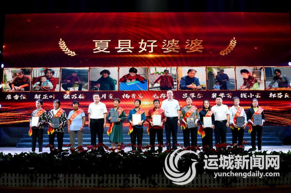 与会领导为获得夏县“两好双佳十美”道德模范人物的“好媳妇”“好婆婆”“最佳荣誉市民”“最佳志愿服务队”“最美教师”“最美医护人员”“最美基层民警”“最美驾驶员”“最美退役军人”“最美职业农民”“最美环卫工人”“最美技术工人”“最美老干部”“最美基层调解员”以及2022年度担当作为干部进行了颁奖。