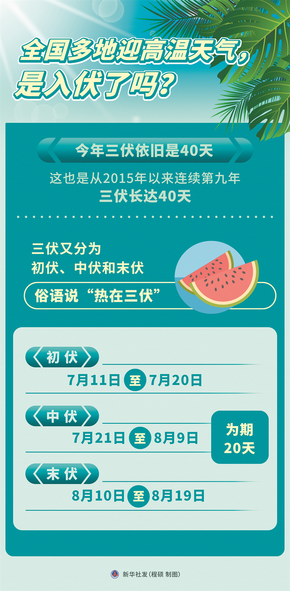 新华社天津6月25日电(记者 周润健)6月中旬以来,全国多地迎来高温天气,部分地区打破历史同期高温极值纪录,如此炎热,是入伏了吗?