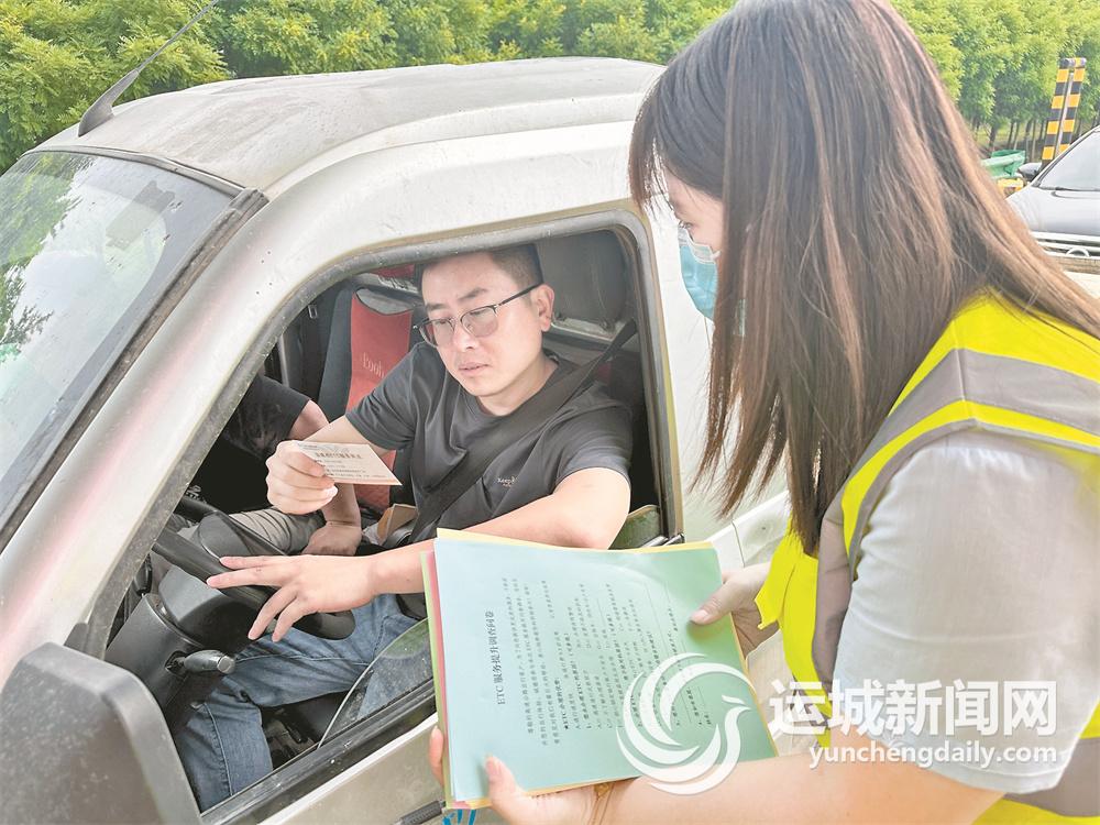 6月26日,运城高速公路管理有限公司运城西收费站员工对过往司乘人员进行ETC问卷调查。