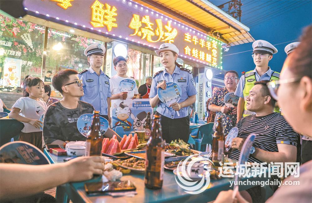 运城晚报讯(记者 樊朋展)进入夏季,市民“夜生活”增多,社会治安防范也显得更加重要。为预防和减少交通事故发生,确保辖区道路交通安全形势持续稳定,连日来,市公安局交警支队组织多个宣传小分队,走进辖区夜市,开展“拒绝酒驾”交通安全宣传活动,全力当好群众的“守夜人”。