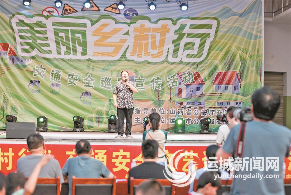 运城晚报讯(记者 樊朋展)夏季天气炎热,酒驾、醉驾、三轮车违法载人等交通违法行为较易发生。为营造浓厚的交通安全氛围,预防夏季交通事故的发生,近日,由山西省公安厅交通管理局指导、运城市公安局交警支队主办的“美丽乡村行”交通安全文艺进乡村走进河津市阳村街道永安村,为当地百姓送上了一场精彩纷呈的交通安全盛宴。