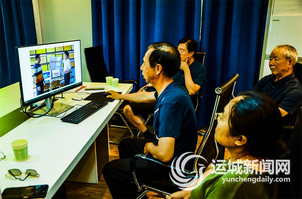 6月25日,万荣县委老干部局“克荣摄影工作室”在挑选反映党建主题的照片。
