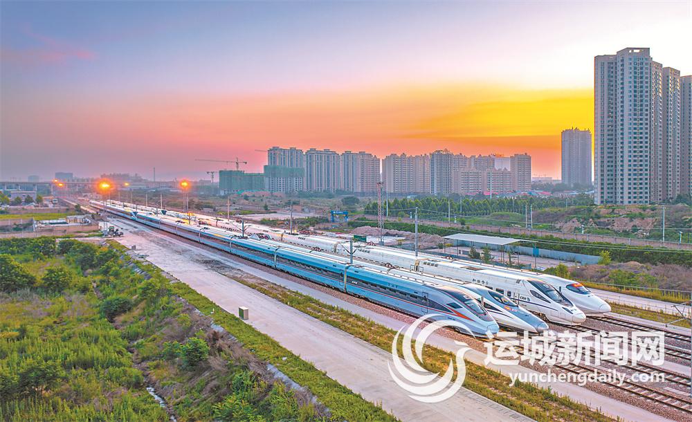 ▲6月24日,在位于盐湖区姚孟街道曲渠村的运城北站动车存车场,4列检修完毕的动车组列车整装待发。特约摄影 杨建峰