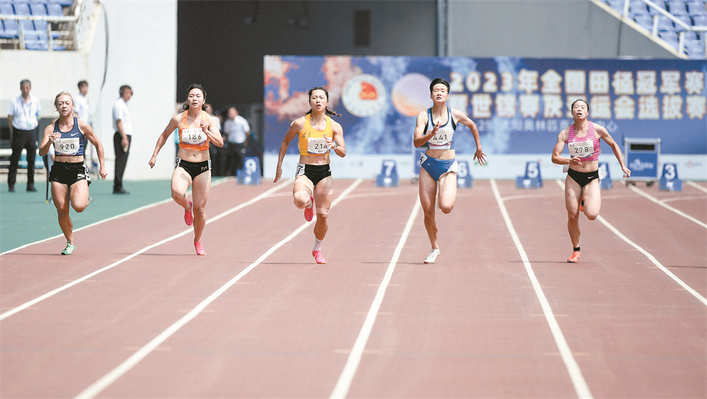 当日,2023年全国田径冠军赛暨世锦赛及亚运会选拔赛女子100米预赛在辽宁沈阳举行。 新华社记者 龙雷 摄