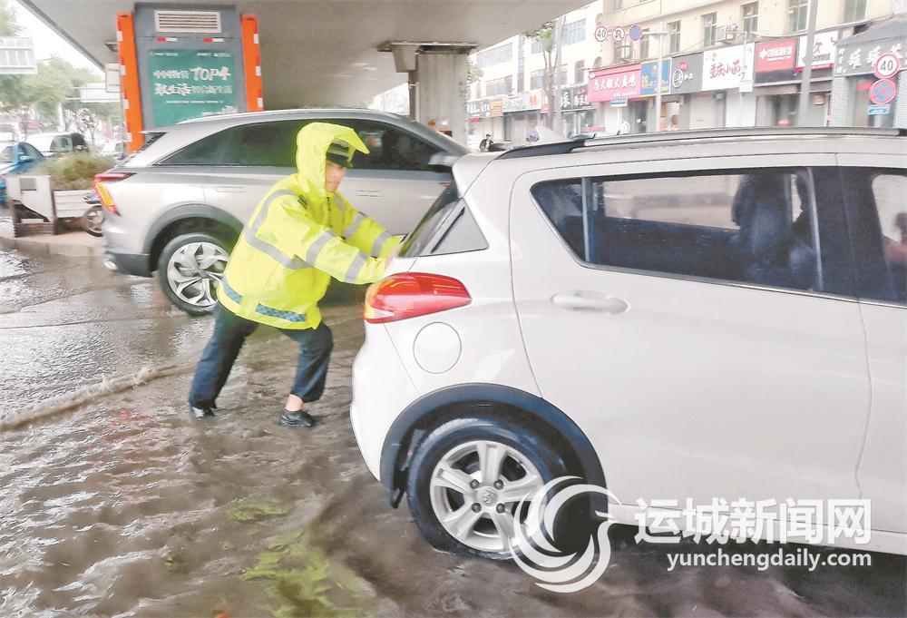6月27日晚上,盐湖交警大队根据我市气象预警,安排各城区中队、摩巡队、公路巡警等部门留足机动警力,坚守城市易积水路段,确保行车安全。