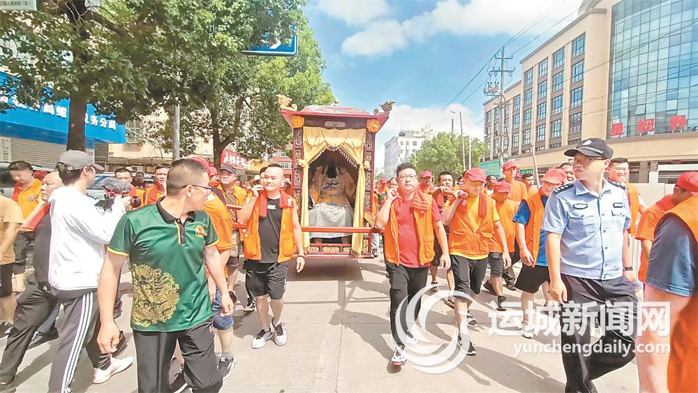 6月26日,关帝圣像在福建省泉州市石狮市蚶江镇巡境。 杜磊 摄
