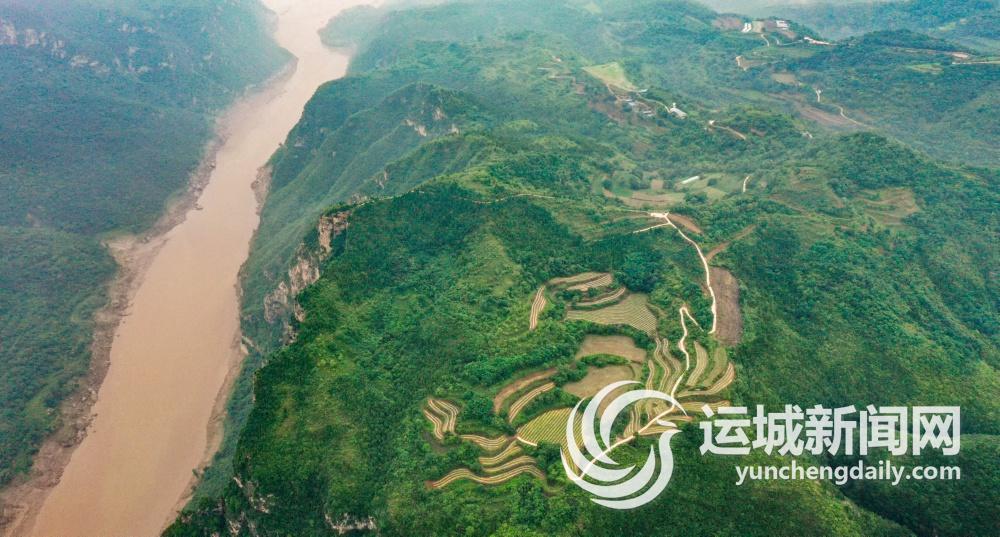 6月29日,夏县祁家河乡双山景区,弯弯曲曲的黄河、层层叠叠的梯田与绵延起伏的群山交相辉映,构成一幅壮美的绿色画卷。