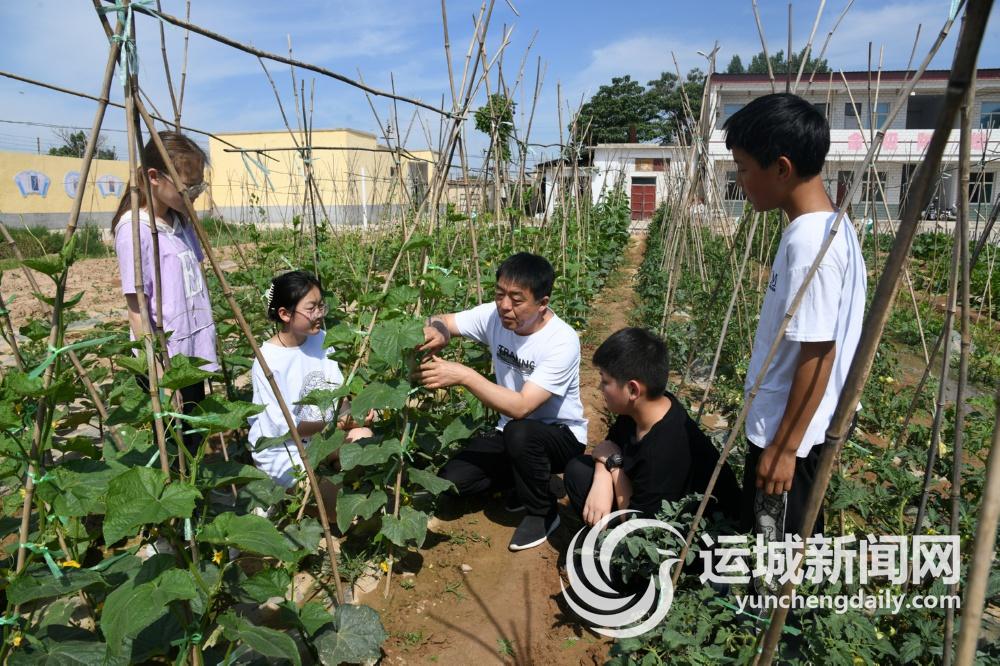 6月27日,闻喜县城南小学六年级学生在学校的劳动基地进行实践活动。