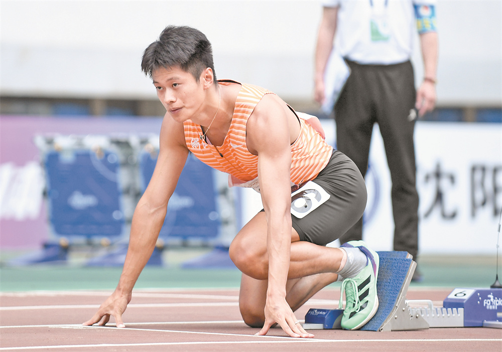 ▲6月29日,浙江队选手谢震业在比赛前准备。最终,他以20秒49的成绩获得冠军。 当日,2023年全国田径冠军赛暨世锦赛及亚运会选拔赛男子200米决赛在辽宁省沈阳市举行。 新华社记者 龙雷 摄