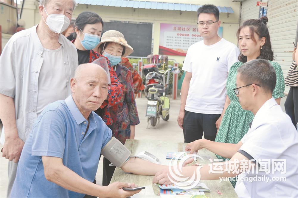 ▲近日,闻喜县北城社区居委会联合该县卫生健康综合服务中心开展空巢老人健康义诊活动,提升空巢老人幸福感。