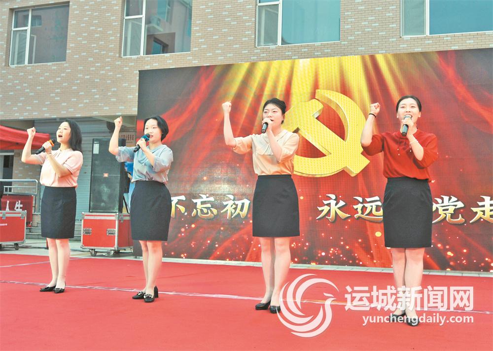 6月28日晚,万荣县孤峰社区在该县恒泰花园小区广场,举办“同心同德同携手 党群连心庆‘七一’”“邮储杯”文艺汇演活动,用朗诵、独唱、舞蹈等形式庆祝党的生日,小区居民、党员500余人观看了演出。