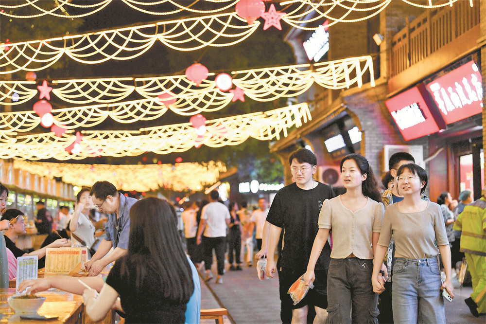 ▲6月28日,游客在延安市延州二道街夜市游览。 入夏以来,陕西延安的旅游市场升温。延安市打造了形态多样的夜间消费场景,进一步激发消费活力。新华社记者 张博文 摄