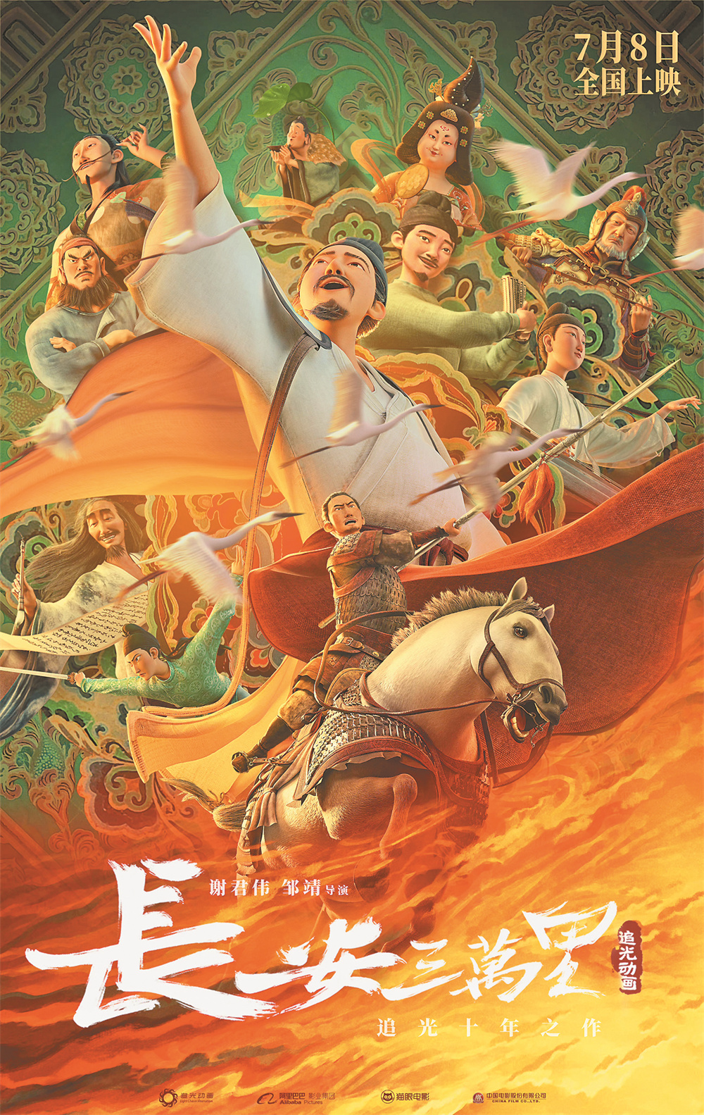 《长安三万里》从高适视角出发,讲述他与李白之间跨越数十载的深厚情谊,以及追逐理想、实现人生抱负的恢弘故事。影片用动画形式再现泱泱大唐,以极具风格化的手法展现李白、高适、杜甫、王维等大唐群星的风采。