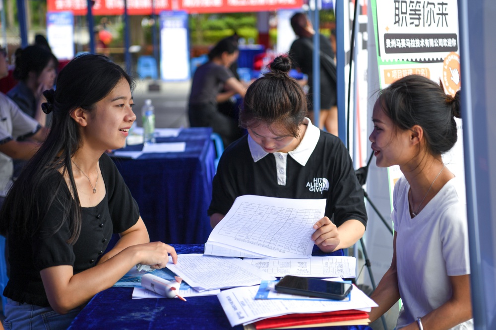 当日,贵州省黔东南州2023年“职引黔程·点亮未来”高校毕业生大型招聘会在贵州省黔东南民族职业技术学院举行,来自贵州贵安新区及粤港澳大湾区等地的122家企业为黔东南州高校毕业生提供近4000个就业岗位。