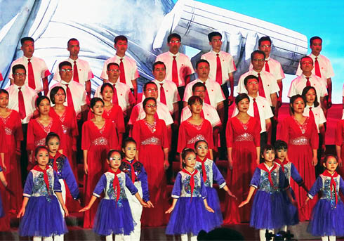 6月30日,新绛县举办“学习二十大,奋进新征程,信仰的力量,庄严的承诺”庆祝中国共产党成立102周年大型歌咏活动。 特约摄影 高新生 摄