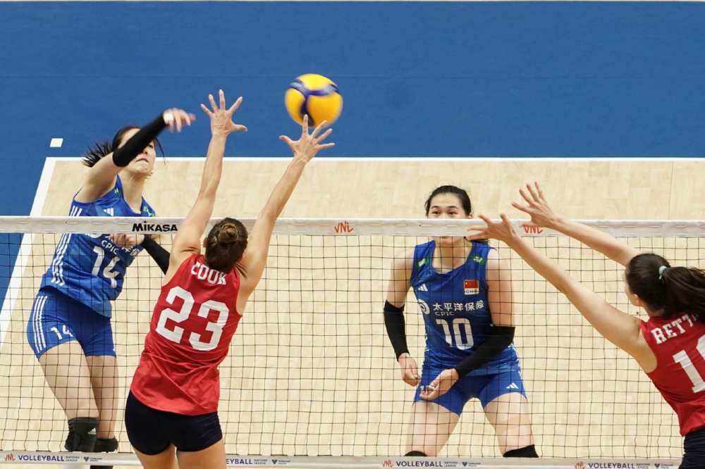 中国队首局开局不利以4:8落后,美国队多点进攻频频得手,中国队虽在李盈莹和袁心玥的带领下追分,但未能挽回局面,以18:25告负。第二局,中国队逐渐找到节奏,凭借王云蕗和龚翔宇的反击得分,建立7:3的领先优势。局中,李盈莹强攻连续下分,防守端也打出良好表现,期间王梦洁防守过渡球直接得分,帮助球队以16:12领先。随着美国队发球下网,中国队以25:19扳回一局。