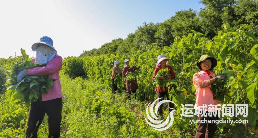 7月4日,位于夏县尉郭乡西阴村的山西嫘祖故里农业开发有限责任公司的员工在采摘桑叶。