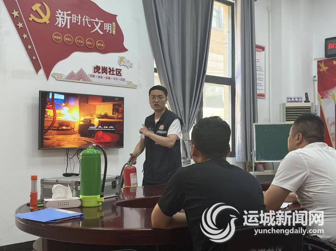 运城晚报讯(记者 李爽)为增强辖区居民的消防安全意识,7月4日下午,河津市城区街道虎岗社区邀请宣安防火科技有限公司运城分公司的讲师进社区举办消防安全知识讲座。讲座以“人人讲安全 个个会应急”为主题,社区工作人员、网格员、各小区物业负责人及部分居民参加。