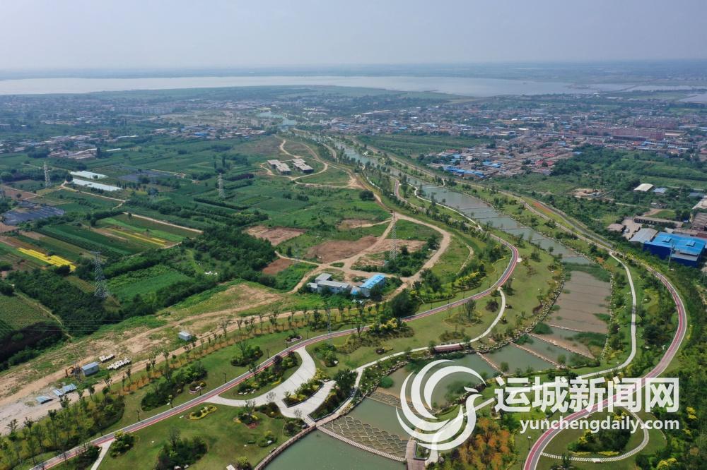 7月4日航拍的盐湖区解州镇五龙峪河道生态文化景观区。