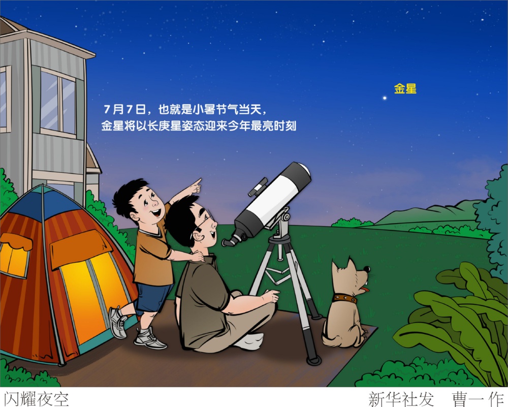 夜空中,亮度仅次于月球的金星即将迎来“高光一刻”。天文科普专家介绍,7月7日,也就是小暑节气当天,金星将以长庚星姿态迎来今年最亮时刻,在西边夜空中熠熠生辉,大放光彩。