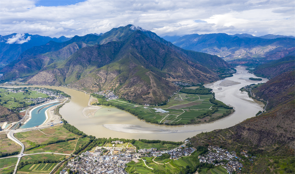 这是近日在丽江市石鼓镇拍摄的金沙江景色(无人机照片)。
