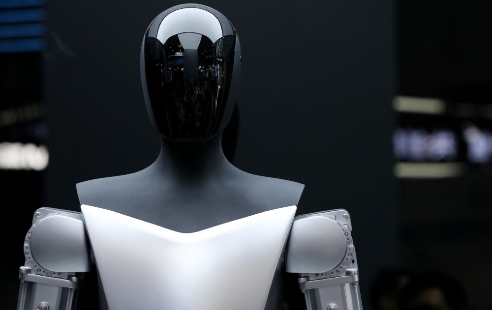 这是7月6日在2023世界人工智能大会展会现场拍摄的特斯拉机器人。