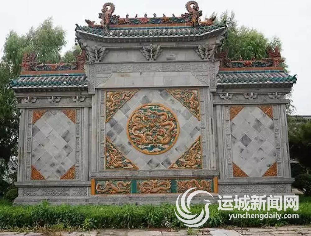 清朝乾隆三十年,山西商会募集资金,再次扩建、大修关帝庙,并增建仪门、配殿、戏楼、东西辕门及配套房舍等。到了乾隆五十年,山西商人又扩建关帝庙,在大门前修筑琉璃照壁墙,兽脊压顶、彩楹画栋,壁上镶嵌绿底黄龙,腾云驾雾、威仪八面,这就是著名的台儿庄“九龙壁”。照壁正面镶嵌“博爱高明,浩气弥纶天地;神圣文武,英灵卓绝千古”对联,字迹飘逸、苍劲有力。