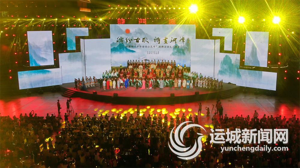 6月30日晚,在热烈庆祝中国共产党成立102周年的重要时刻,河津市被授予“中华诗词示范市”牌匾,让河津又多了一张传承古耿文脉、展示人文风采的国家级名片。“谁凿龙门引鲤来,鳍摇尾摆跃高台……”一首《河津龙门》诗拉开河津市“中华诗词示范市”授牌活动文艺晚会的帷幕。整场晚会分为序章《源起龙门》和《魏风开源,诗会龙门》《璀璨星空,诗怀梦想》《筑梦未来,诗意河津》3个篇章及尾声五大板块,全方位展现河津厚重的历史人文,生动地讲述河津历史名人故事,给广大群众献上了一场传统诗词“文化盛宴”,进一步弘扬了中华优秀传统文化,凝聚起文化奋进的强大力量。