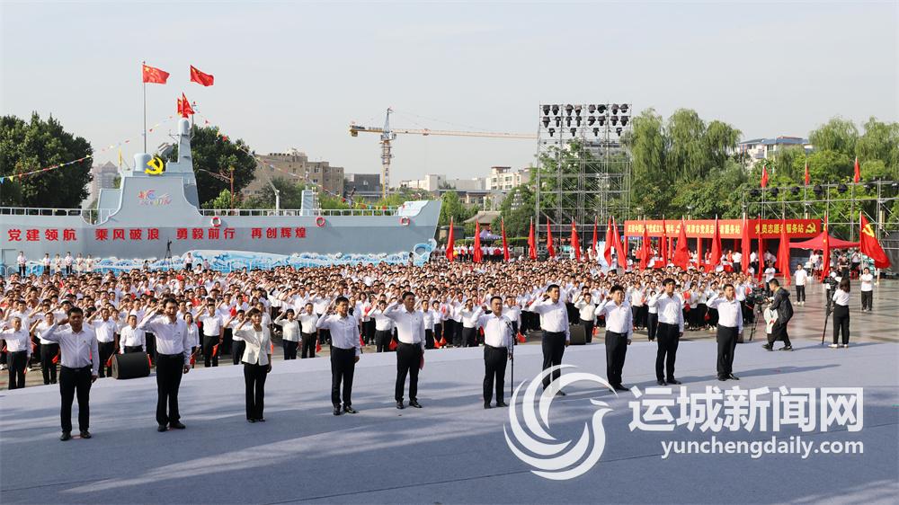 运城市委常委、河津市委书记李晓武带领河津广大党员面向党旗庄严宣誓