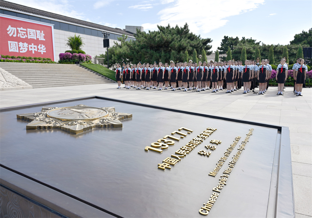 7月7日,首都学生代表参加纪念全民族抗战爆发86周年仪式。