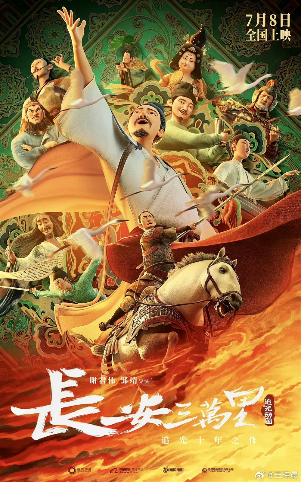 动画电影《长安三万里》展现了大唐盛世的瑰丽图景,从高适的视角出发,讲述了他与李白之间数十载的深厚情谊,以及“诗圣”杜甫、“诗佛”王维、玉真公主、“唐代乐圣”李龟年、“草圣”张旭、大唐名将郭子仪、哥舒翰、李白的至交好友丹丘生及裴十二等众多顶流大唐群星的壮美篇章。同时,片中还有多首唐诗名句的视觉化呈现。聊到《长安三万里》主题时,导演谢君伟认为,“这些诗人的经典作品是一直流传下来的,这种文化是流淌在我们血液中的。”制片人宋依依也表示,唐诗是独属于中国人的浪漫,这是团队创作的动力。