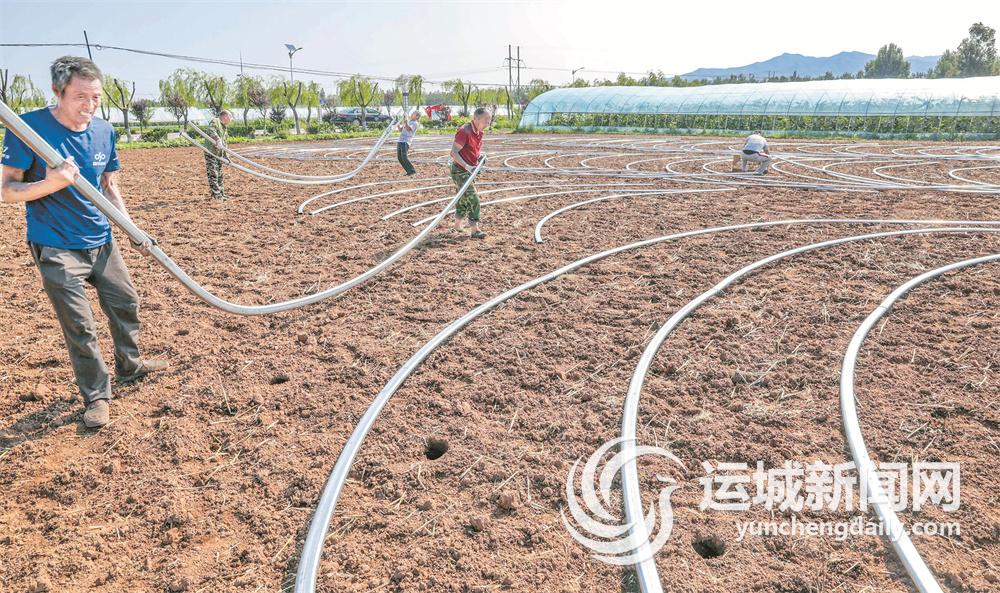 7月9日,平陆县张店镇横涧村,凌昌农业发展有限公司在组织农户建设蔬菜大棚。