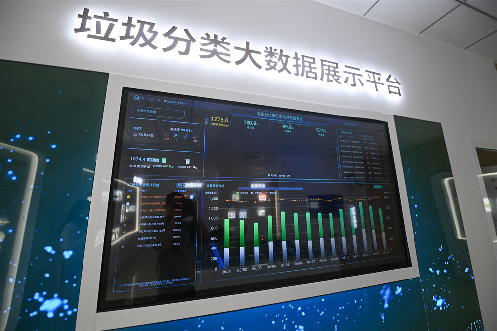 6月15日在浙江省嘉兴市秀洲区王江泾镇虹南村拍摄的垃圾分类数字化大屏,可以实时显示村民当天垃圾分类的实行情况。 新华社记者 徐昱 摄