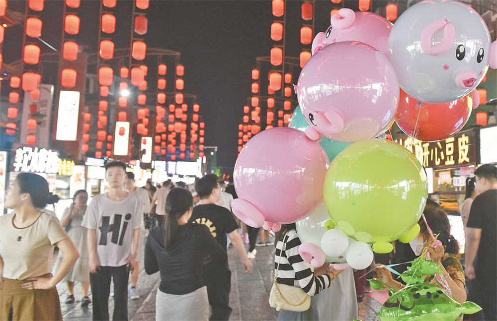 这是7月11日晚拍摄的河南省洛阳市十字街小吃一条街夜景。 近年来,洛阳市围绕“颠覆性创意、沉浸式体验、年轻化消费、移动端传播”理念,通过打造夜间文旅消费新业态,营造多元化夜间文旅消费新场景,为“夜经济”注入新活力。 新华社记者 鲁 鹏 摄