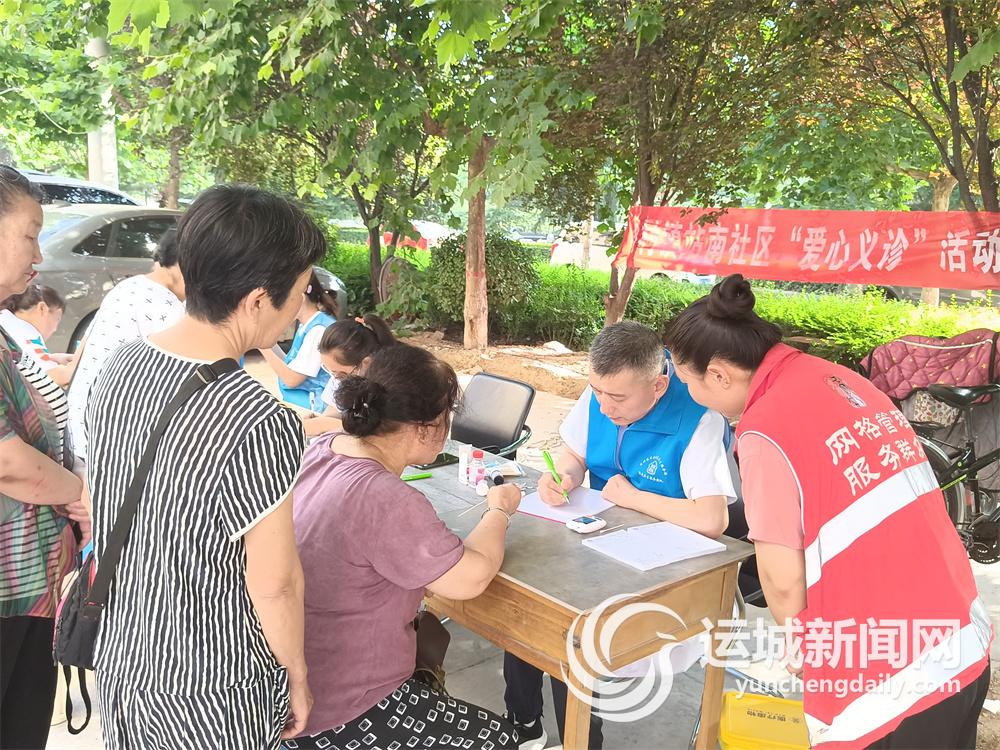 运城晚报讯(记者 李爽)为进一步普及健康知识,传播健康理念,7月11日上午,盐湖区陶村镇站南社区联合该社区卫生服务站,在辖区开展“爱心义诊”活动,为居民免费检查身体,宣讲健康知识(下图)。