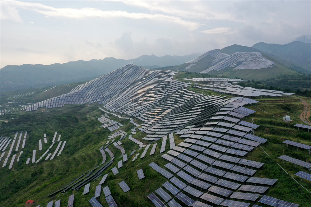 在山西省芮城县学张乡拍摄的光伏电站(无人机照片,7月12日摄)。
