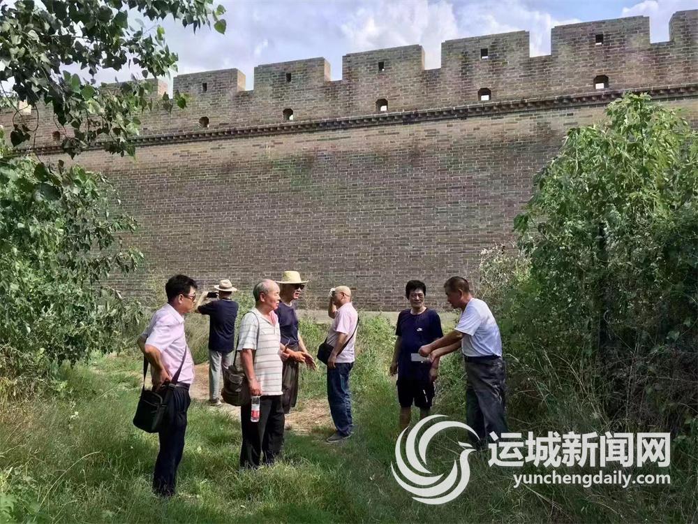 从博物馆出来后,雷学军一行驱车来到蒲州城北门城墙下调研。曹中义介绍了“邓岗死守蒲州城”,全营308名官兵与日军同归于尽的悲壮故事。陕军孙蔚如将军亲属陈媛女士感动地对曹中义说:“曹老师,感谢您给我们讲述了我舅爷第四集团军‘血战永济’的历史。”