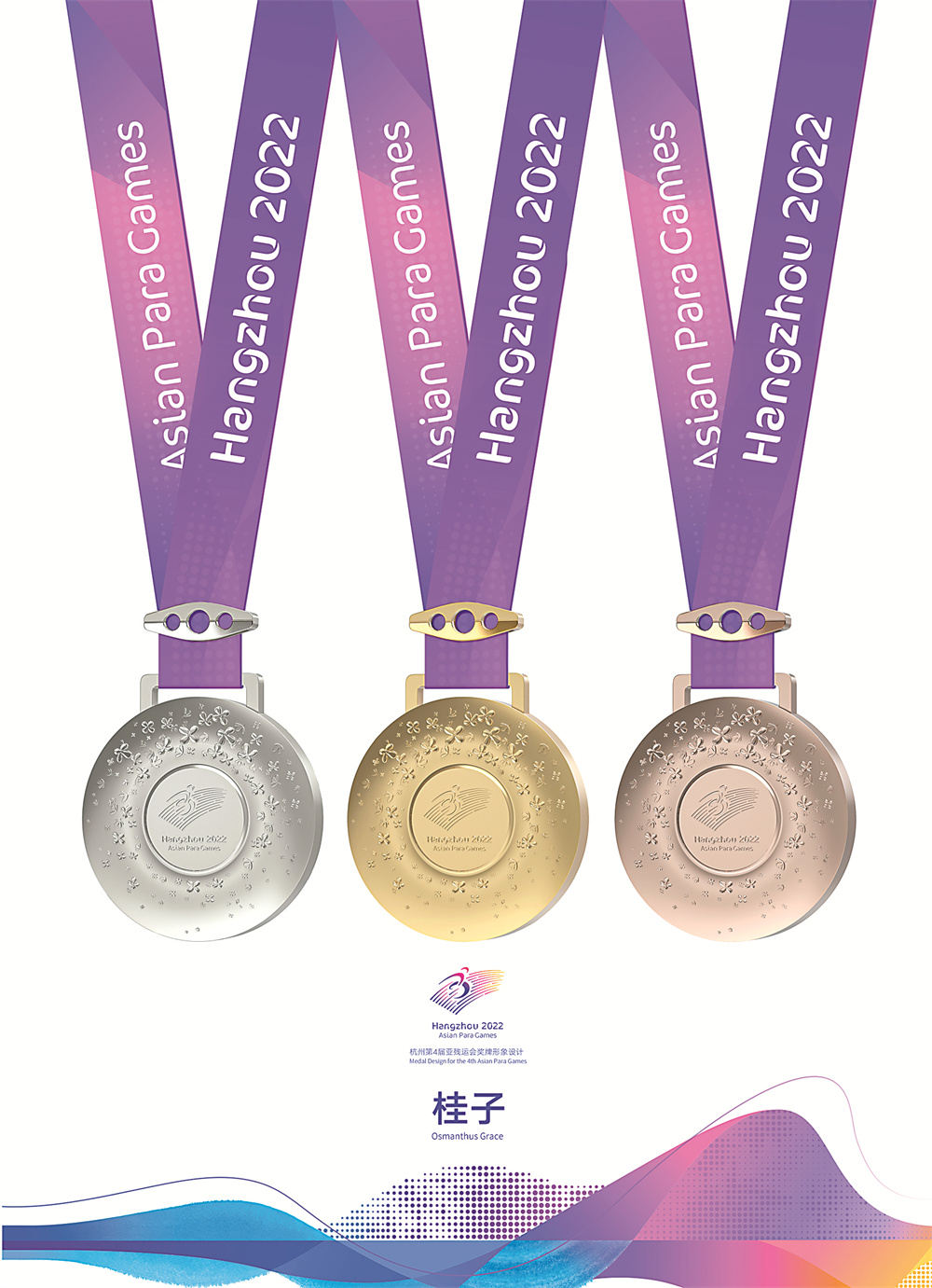 7月14日,在杭州第4届亚残运会倒计时100天主题活动上,杭州亚残运会奖牌“桂子”正式发布。 新华社发(杭州亚残运组委会供图)