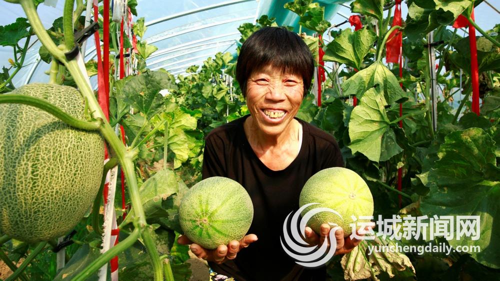 7月11日,芮城县柴涧村江玉莲种植的哈密瓜喜获丰收。