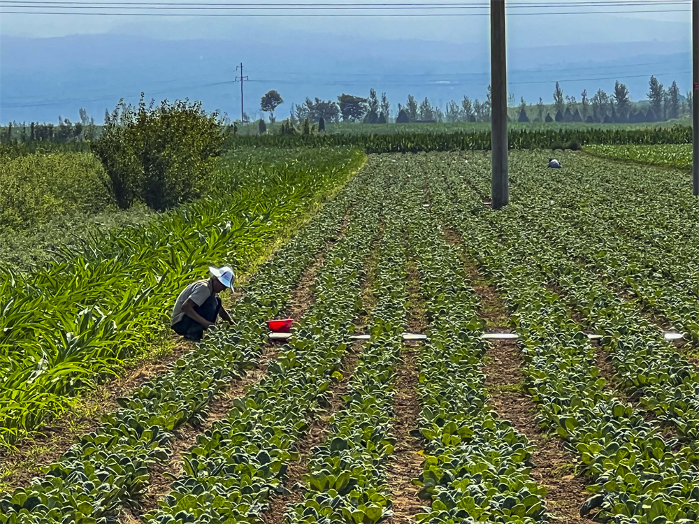 7月17日,万荣县解店镇西解村药农在田间铺设灌溉设施。