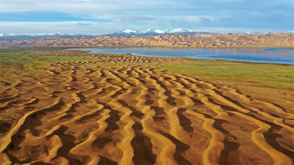 近日在新疆阿尔金山国家级自然保护区拍摄的小沙子湖(无人机照片)。