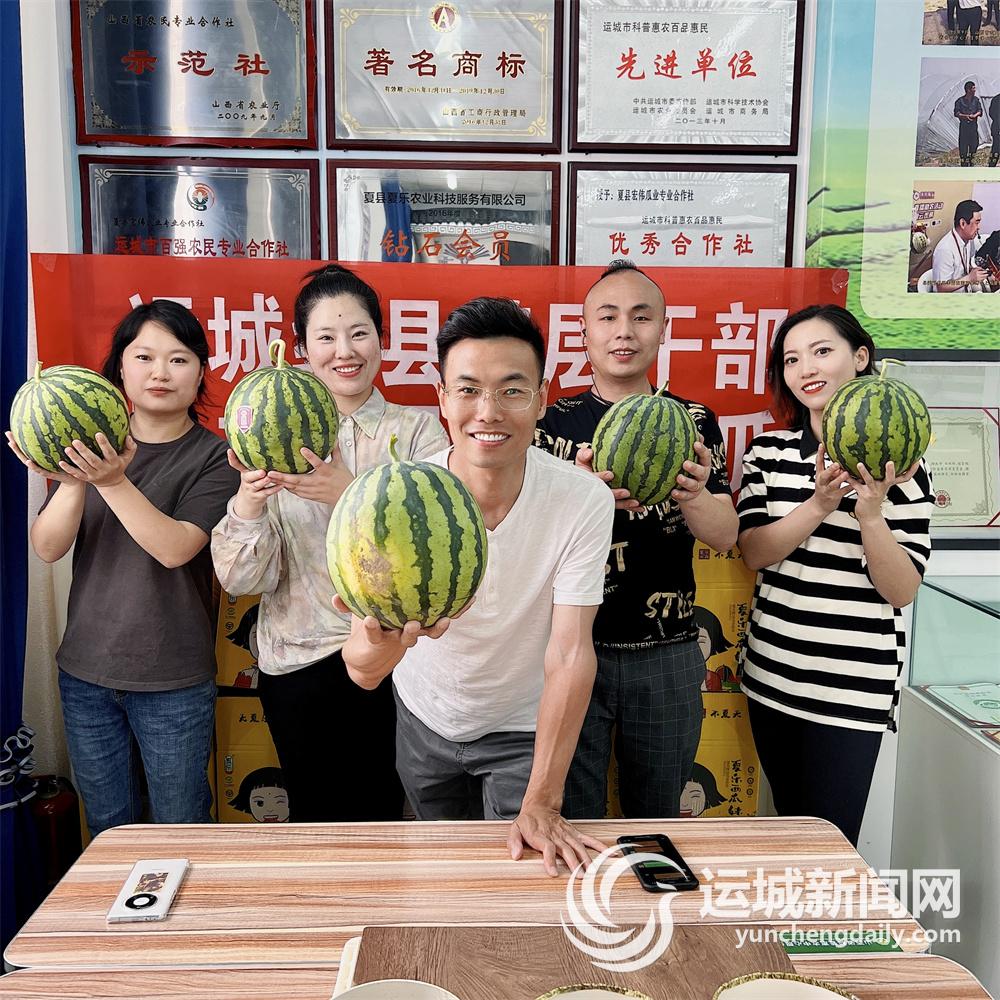 在大交村“产业村长”李霞注册开设的“抖音助农直播间”,绛县基层干部正在帮助瓜农销售西瓜(资料图片)。