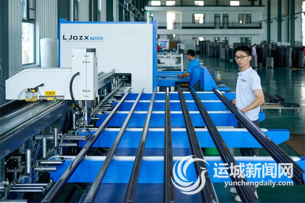 7月17日,位于运城经济技术开发区的山西晋恒科技有限公司生产车间内,工人在智能化铝合金门窗生产线上操作。
